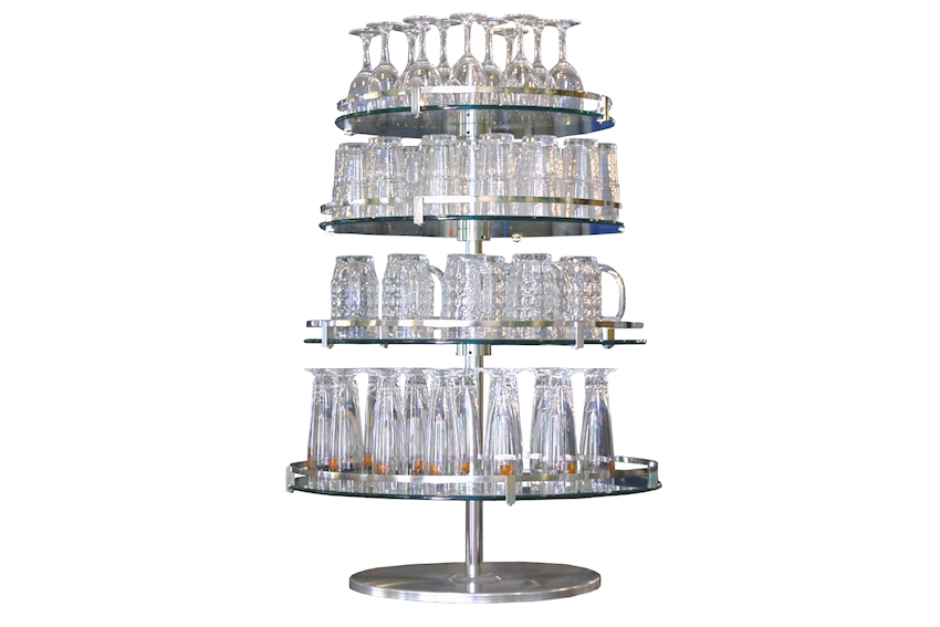 gehärtete Glasplatten 8mm, Höhe 94cm, Dm = 45/50/55/60cm, Zentralachse aus verchromten Stahl, Set mit drei Stangen, somit Höhenverstellbar. Höhe kann individuell erstellt werden