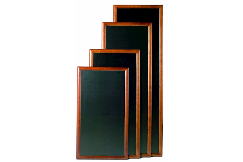 Kunststofftafeln mit dunkelbraunem Holzrahmen, zum Beschriften mit Kreide- markern