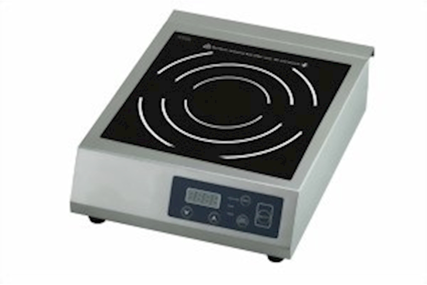 surface ceran, boîtier acier spécial, minuterie, affichage LED, 10 marches de puissance (500-3500W), 10 marches de température (35°-240°C), avec prise type 23, sécurité contre surchauffement éléctronique, pieds en alu, hauteur ajustable
