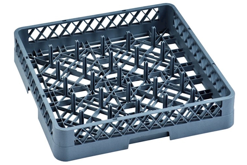 Panier assiettes avec 25 doigts Serie 9860 extérieur: 50 x 50 x 10 cm Intérieur: 46.5 x 46.5 x 8.7 cm plastique bleu gris unité de commande = pièce
