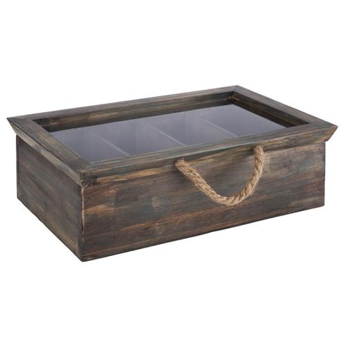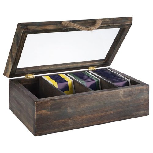boîte à thé Vintage, bois avec fenêtre, 4 compartiments, brune, 32 x 20 x 10cm, Unité de commande = Pièces