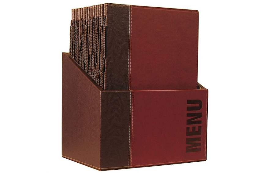 rouge vin, 20 cartes de menu A4 avec présentoire pratique
